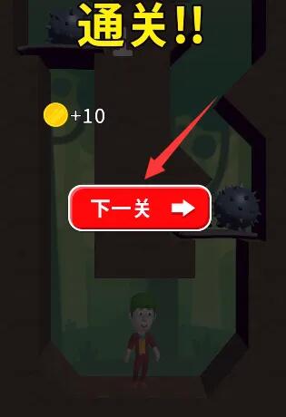 铁球没有砸到小哥哥就可以过关,点击【下一关】继续游戏。