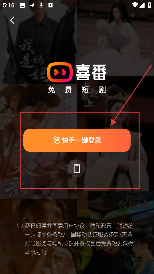 4、若要登录,可点击【快手一键登录】按钮,快速完成登录,方便领取福利和进行后续操作哟。