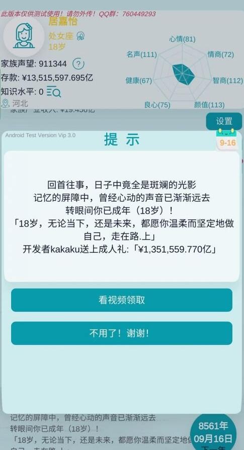 3.我后面有些玩腻了,又想着把产业一次性升满,就没结婚没生娃也没读书,快死了直接领养一个baby,让她继承我的家产,就不用死后给丈夫子女分散家财啦,在攒钱的过程中,你会发现,你攒的钱越多,kaka给你送的钱越多,第一次送也就是十八岁的时候大概10:1,后面两次20:1,这才是真正的发家致富大法啊,比家族企业来的还快,不得不说的是,这种做法少了很多体验感哈。