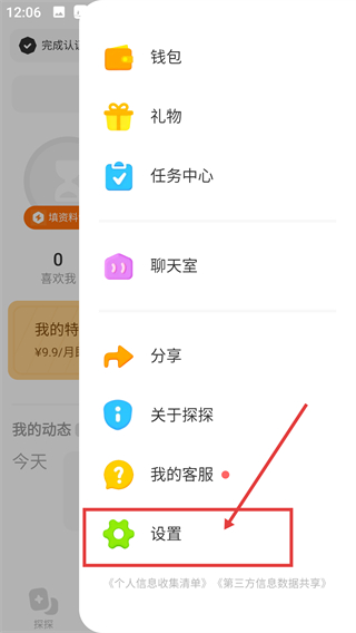 1、在个人功能列表页,点【设置】选项,可进入设置页面,调整账号相关的各类功能哦。