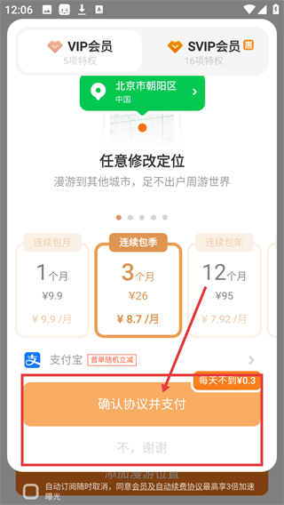 4、弹出会员支付窗口后,可选择支付开通会员来解锁漫游功能,或选“不,谢谢”关闭窗口呢。