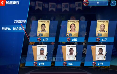 在【球星商店】页面玩家会看到有交易特例、特训卡转会协议两个功能,接着点击【交易特训】按键。