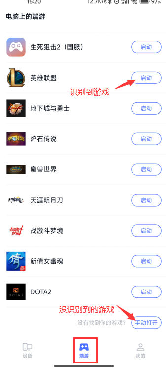 页面会自动识别你电脑上的游戏,若未识别,可选择手动打开