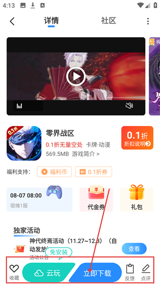2、进入游戏详情页后,确认信息后点【立即下载】可获取游戏,也能选【云玩】直接体验哦。