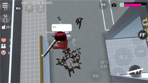 4、当附近没有人时,主角们发射的炮弹,比如小学生的魔法光球,摩托上的微型火箭,激光炮,巫女和神主的符咒,都是默认朝着离主角最近的可操控角色去的,即是那个角色和操控的角色隔着十几座房子