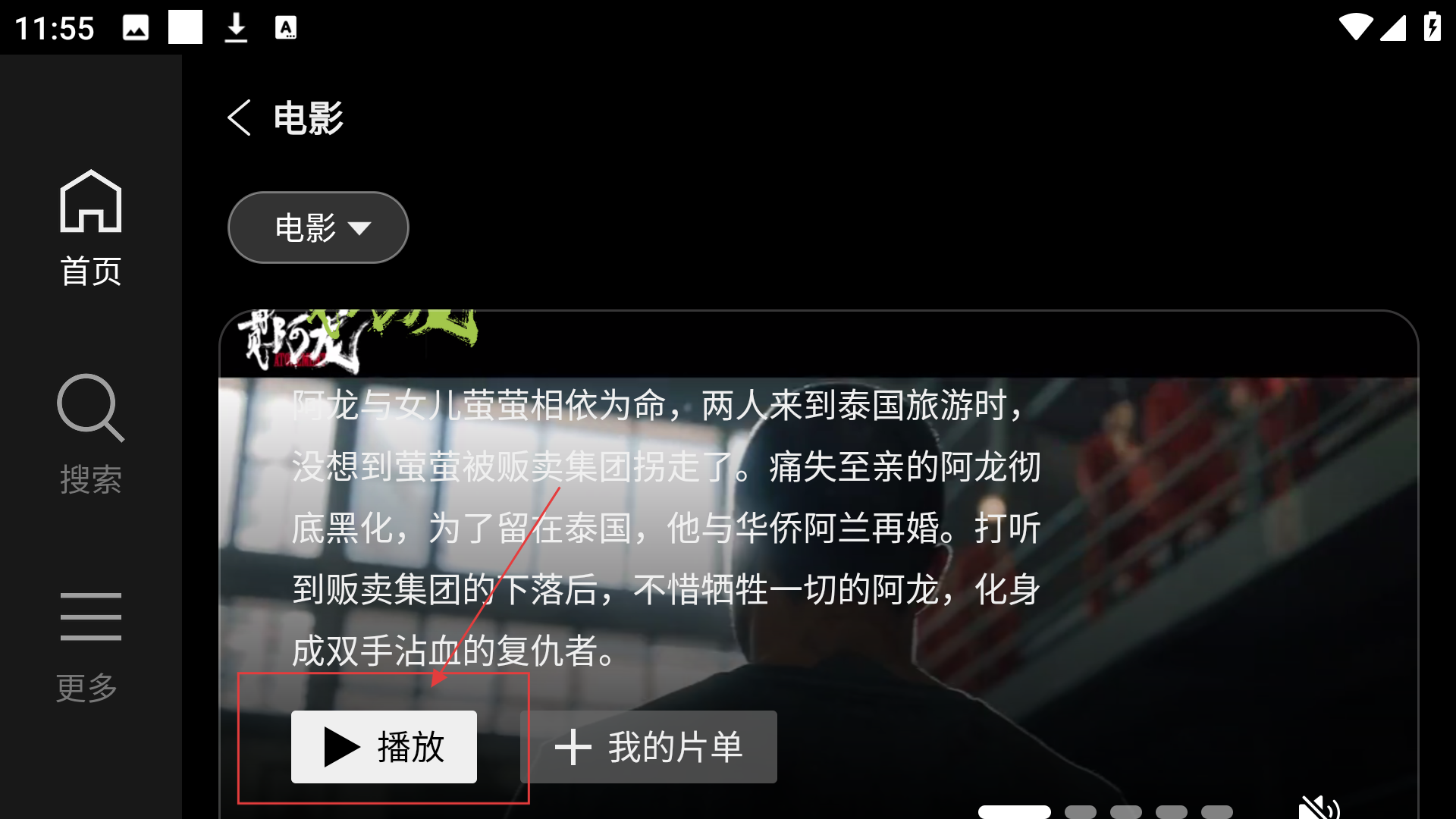 2、在电影界面点击【播放】,进入影片播放界面,开始观看影片啦。