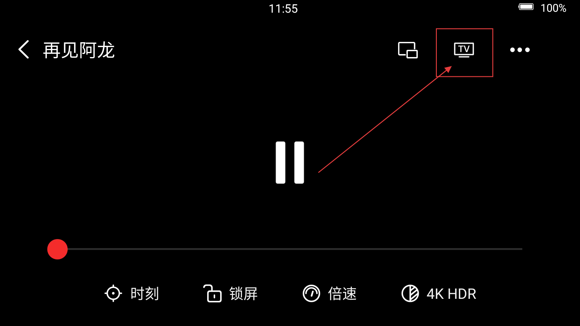 3、在播放界面点击TV图标,展开设备选择界面,准备投屏啦。