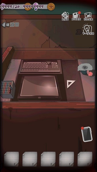 2、点击右边桌子里的文具盒,用物品栏里的“别针”将文具盒打开,里面有线索碎片可查看,拿走里面的“空白纸条”。