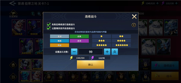 游戏的体力分为黄色和紫色两种,黄色体力作为普通正常挑战所需的消耗资源,而紫色体力则是用于挂机所需要的额外特殊体力,通关后的关卡可使用紫色体力进行挂机刷资源。值得一提是挂机不能离线进行,玩家可以在挂机刷资源的同时进行其他操作,更好规划发展策略。