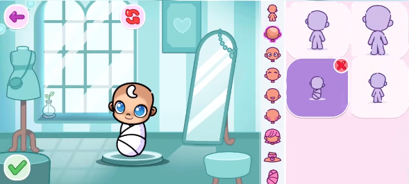 2、婴儿人设包括了肤色、脸型、衣服等,你能自由搭配