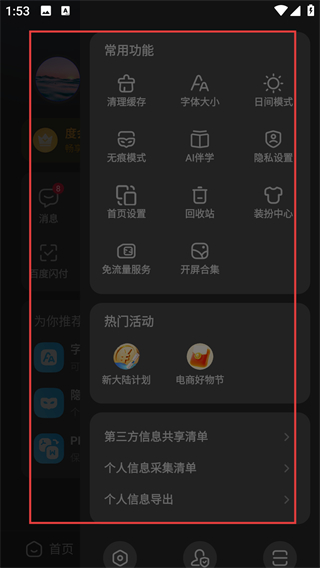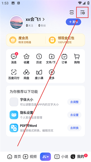 1、在百度APP首页,点击底部的“我的”选项,就能进入个人中心页面,查看各类个人相关功能啦。