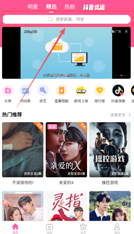 2、找剧的时候嘛,要么在顶上搜一搜剧名,要么就在“首页”或“片库”里随便翻翻,看到封面顺眼的点进去看看。