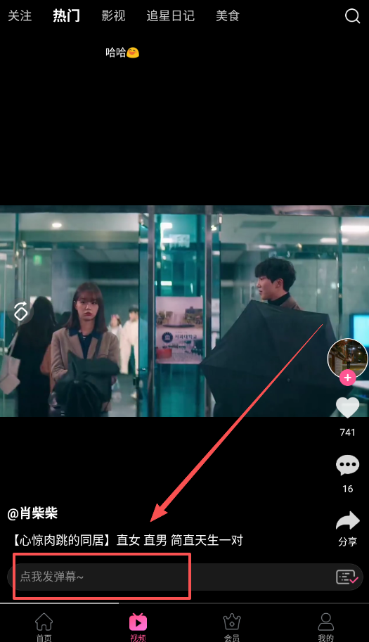 4、观看视频时,可以点击“点我发弹幕”的按钮,输入你的想法并发送,就能和其他观众一起互动交流,让看剧变得不那么孤单。