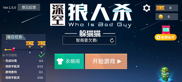 1、下载安装好深空躲猫猫,运行游戏,点击开始游戏;