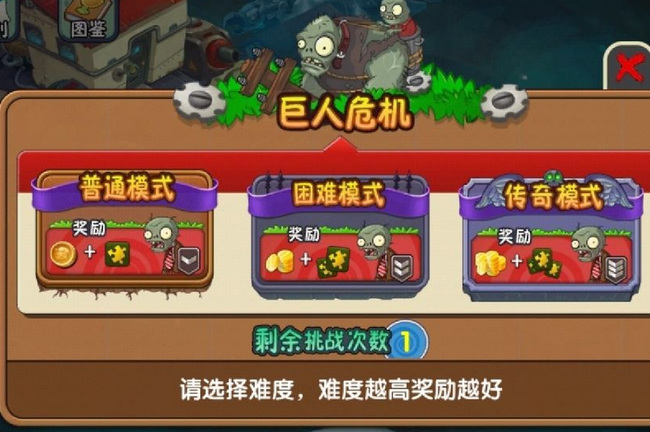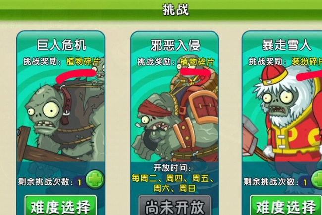 4.挑战巨人危机和邪恶入侵模式可以获得植物碎片和金币奖励,挑战暴走雪人模式可以获得植物装饰碎片和金币奖励。