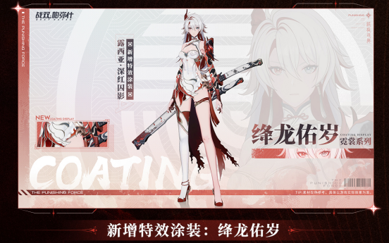 【露西亚·深红囚影】新增特效涂装:绛龙佑岁·霓裳系列,雪皑点绛,英姿飒爽;