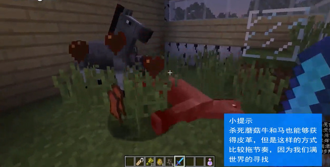4.杀死“蘑菇牛”和“马”也能获得皮革,但比较托节奏,因为需要满世界的寻找。