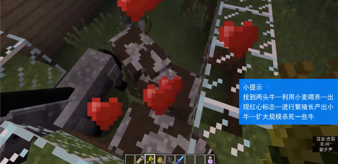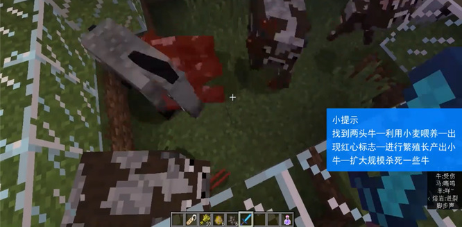 2.用小麦分别喂养两头“成年牛”,会出现“红心”标志,之后会进行繁殖。