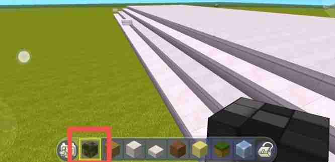 1、先用硅石块造出教学楼前面的楼梯。如图所示。