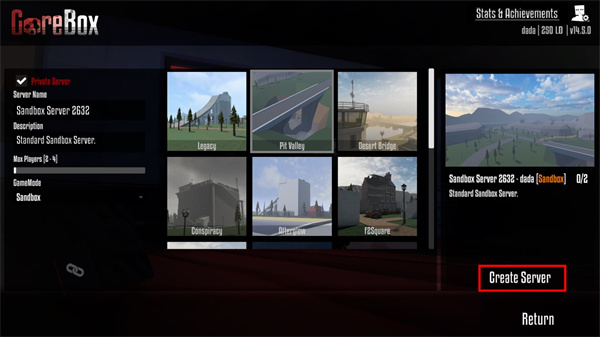 4、然后选择你想玩的地图,点击“Create Server”进行创建服务器即可;