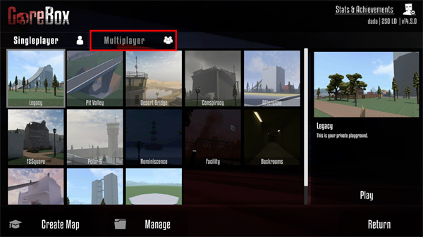 2、出现地图界面后,点击上方的“Multiplayer(多人游戏)”;