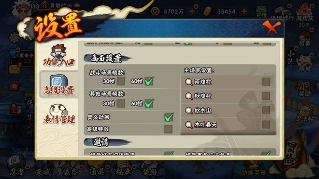 1.首先我们打开火影忍者,点击左侧的设置
