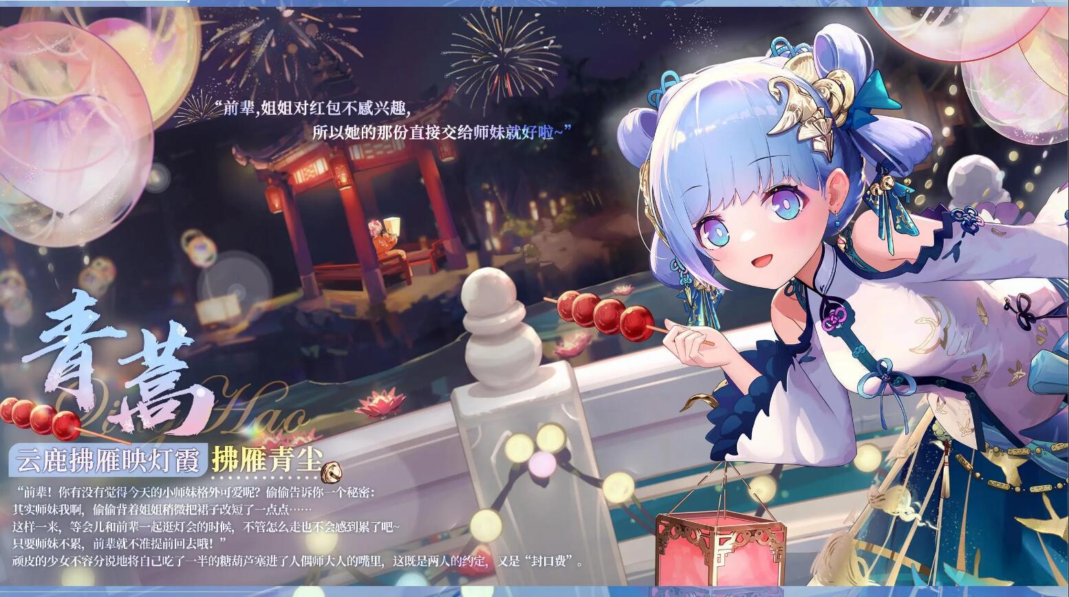 “前辈!偷偷告诉你一个秘密:其实师妹我啊,偷偷背着姐姐稍微把裙子改短了一点点……这样一来,等会儿和前辈一起逛灯会的时候,不管怎么走也不会感到累了吧~只要师妹不累,前辈就不准提前回去哦!”