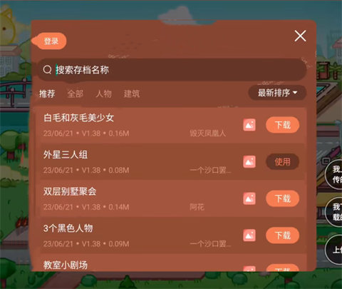 2.搜索存档名称或者直接下拉寻找喜欢的存档,点击【下载】等待下载完成后点击【使用】。