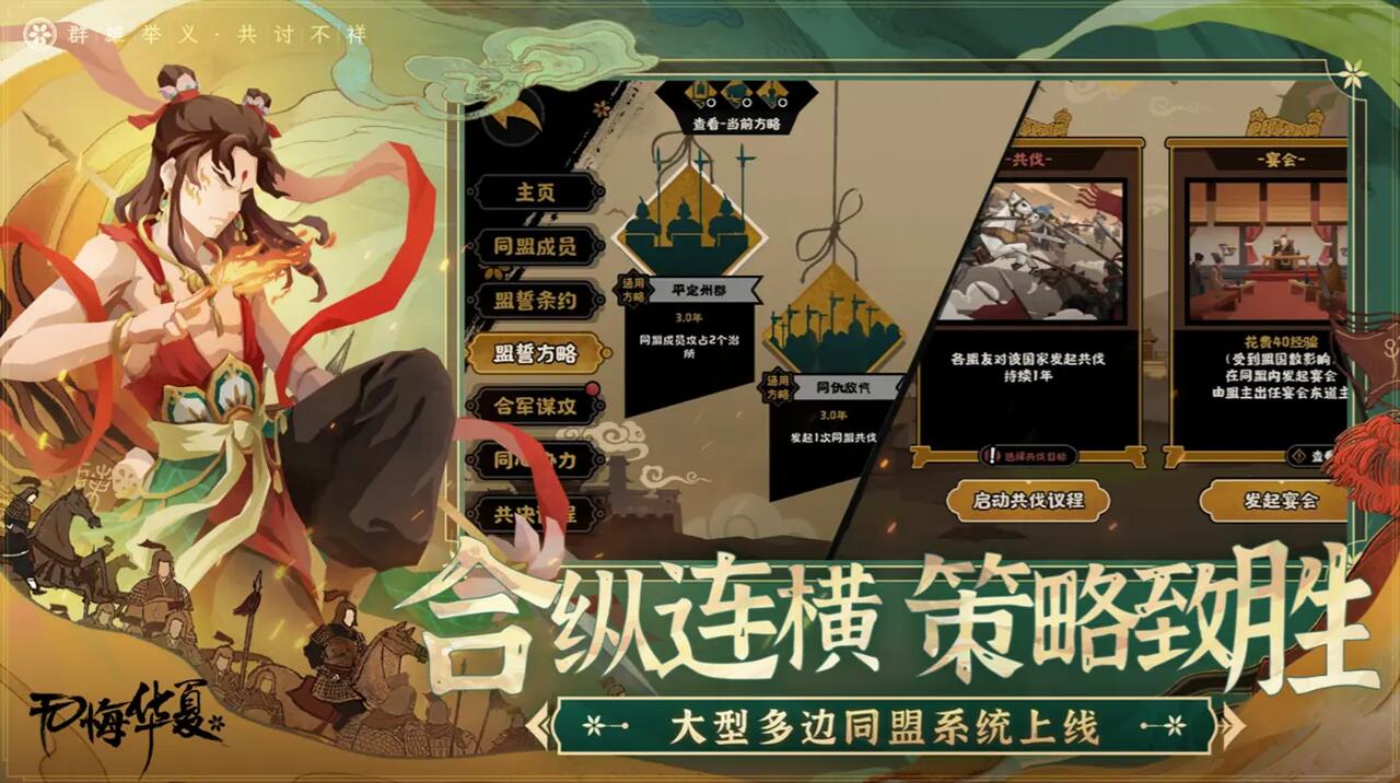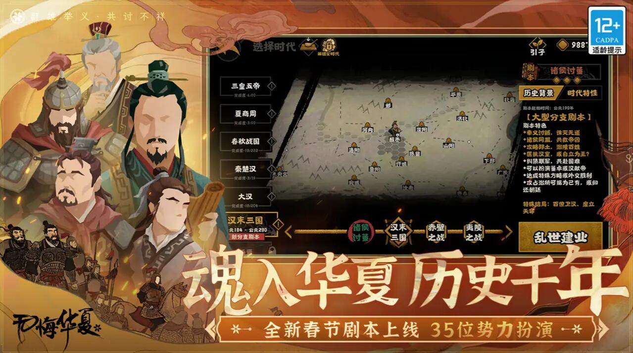 《无悔华夏诸侯讨董版本》为玩家带来全新的版本更新,让玩家回味三国时期最经典的时刻,本次提供最新的版本更新内容让玩家梦回三国时代。此次版本主题就是讨伐董卓,十八路诸侯战董卓的经典场景将会在游戏中完美的还原,将三国演义的历史中还原到游戏中,玩家将化身其中的诸侯联合对抗董卓大军,温酒斩华雄、三英战吕布等都会在游戏中出现,主打就是原著经典的还原,还有各种活动可以参与,带给玩家很多福利能够领取。游戏整体风格比较新颖,游戏的音乐也与游戏本身的质感相匹配,具有简单而古老的风格,听起来很愉快。游戏可玩性强,有大量的历史脚本,玩起来非常有代入感,感受最历史感的策略模拟玩法。