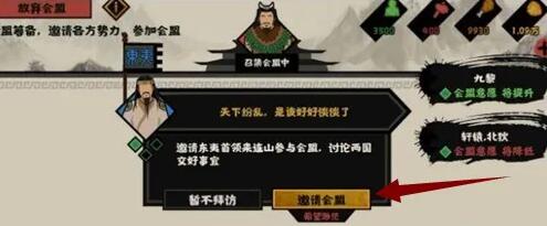 3、邀请其他首领会出现不同的参加意愿,意愿度越高,更容易同意参加会盟。