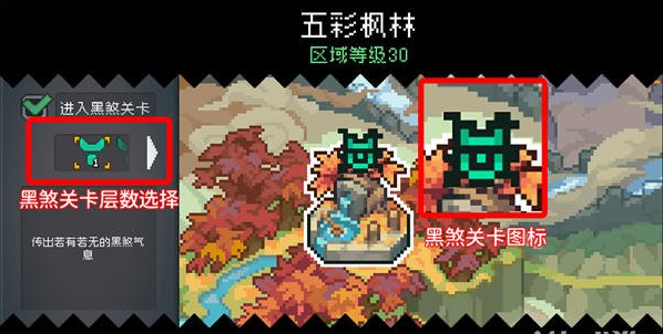 同时,小骑士还可以在左侧选择黑煞关卡的层数。黑煞关卡的难度总共分为6层,完成一层挑战后才可以挑战更高的层数。层数越高,难度越高,奖励也越多。