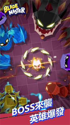 2、这款游戏中,我们要控制小人用身边旋转的飞刃击杀怪物,不要让怪物突破飞刃来攻击我们;