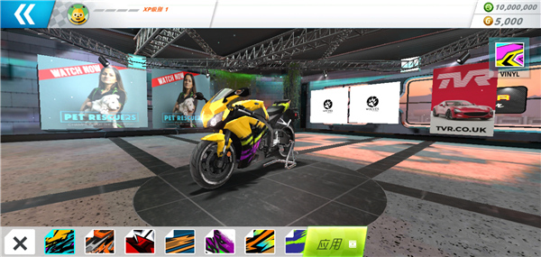 3、定制改装:所有摩托车都支持自定义改装,并可根据需要自由改装,试图创造个性化的车辆来满足不同的比赛需求。