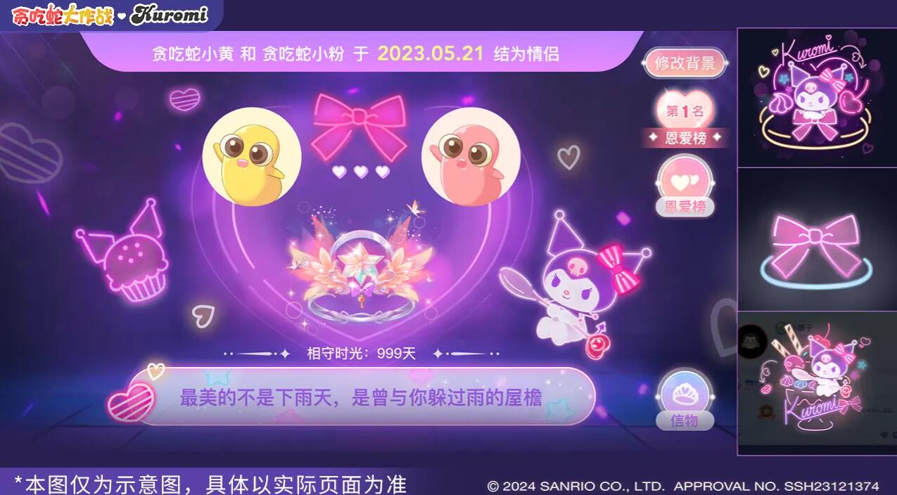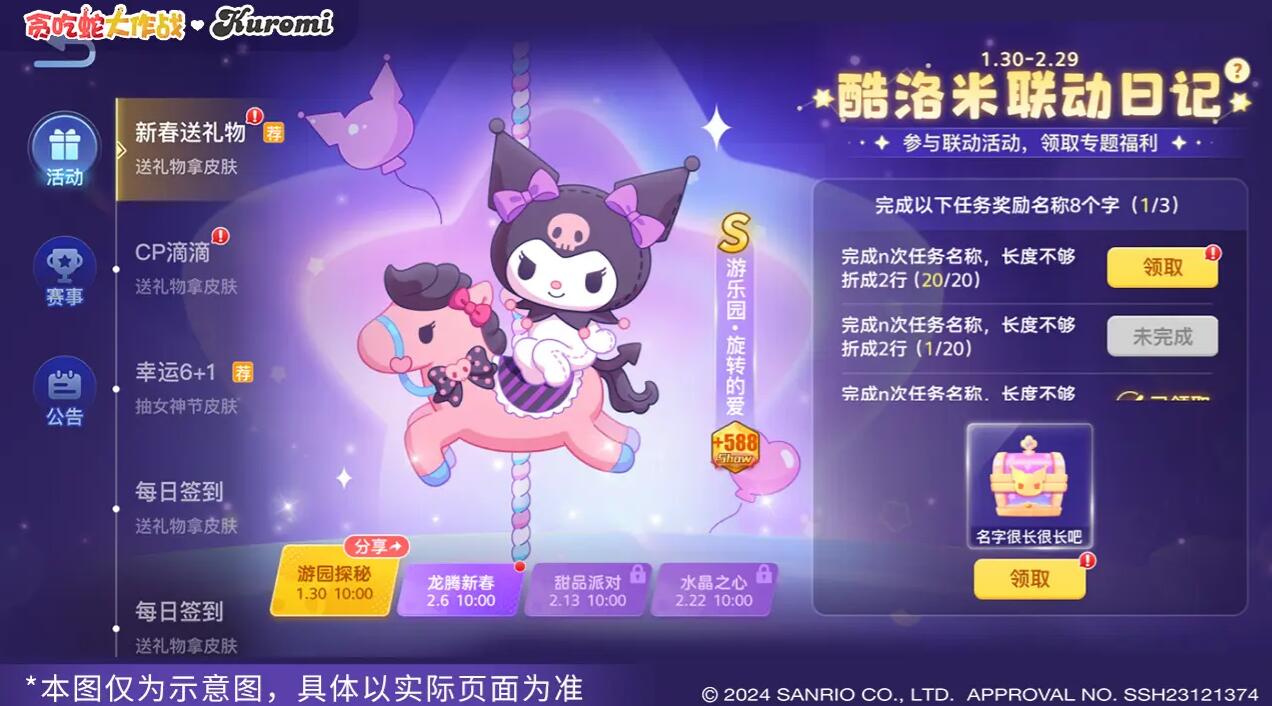 2月13日,酷洛米为蛇宝们带来了一场甜蜜的邂逅!在这个浪漫的活动里,蛇宝们将有机会赢取戒指、CP背景等爱的礼物,让爱与游戏同在!快来参与活动,与酷洛米一起度过一个难忘的浪漫之旅吧!