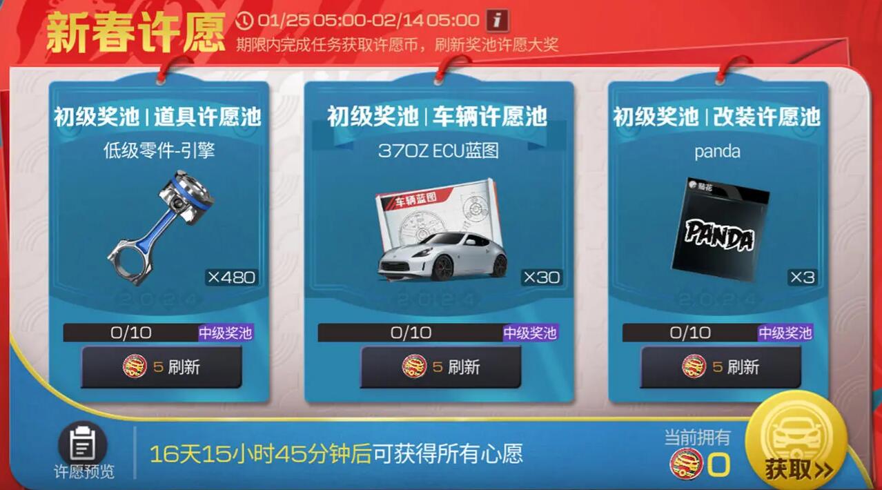 开运256抽、集换造新车、极速抢车位、搭子逛山城、热舞提神车、爆改换新装、新春飙福利~