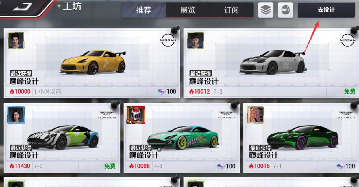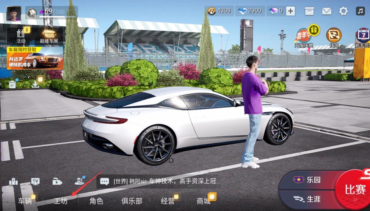 1、首先进入巅峰极速游戏大厅界面,点击工坊。