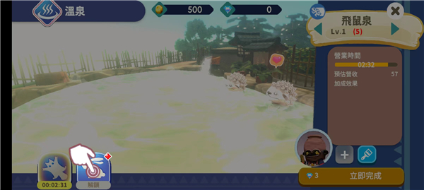 1、温泉经营:提供了非常丰富多样的游戏玩法,玩家能够自由的经营自己的温泉生意让它变得与众不同。