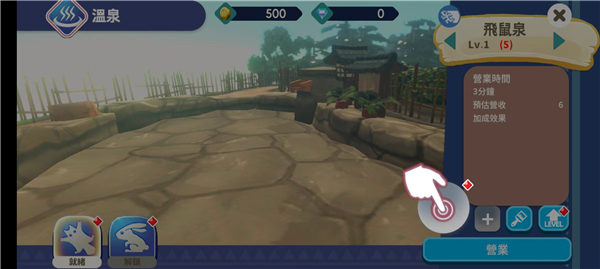 3、游戏主要是经营多个温泉,我们先开始建设第一个温泉,点击温泉;
