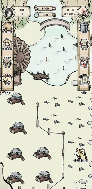 3、种茶:划到最上面,左边有个年轮一样的是茶场,有瀑布流下来的是林场,然后就可以种茶了。