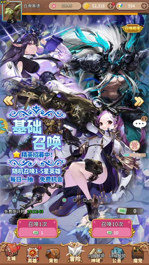 2、这里有三种招募英雄:比如高级召唤、基础召唤、友情召唤;