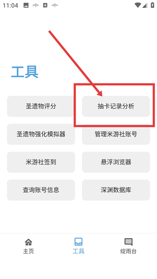 2、进入工具页后点击【抽卡记录分析】选项,就能进入对应的功能界面,准备处理抽卡记录哦。