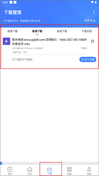 4、这时就会将下载进度显示到【下载】模块中,点击右下角的边下边播。