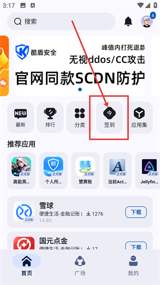 1、在应用首页点击【签到】选项,就能进入每日签到页面,完成签到领取对应的奖励啦。