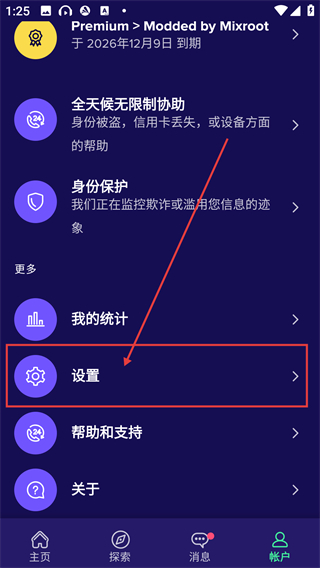 2、进入帐户页面后,找到【设置】选项并点击,就能进入设置界面,调整软件的各项功能参数哦。
