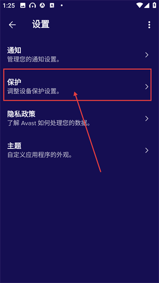 3、在设置页面点击【保护】选项,就能进入保护设置界面,调整设备的安全防护相关配置啦。