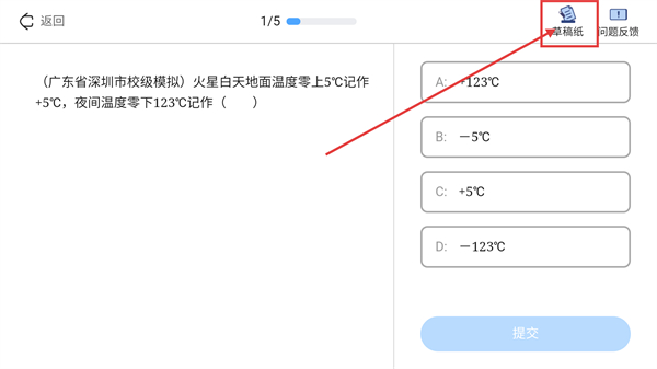 3、在答题页面,点击右上角的【草稿纸】按钮,就能调出草稿工具辅助解题啦。