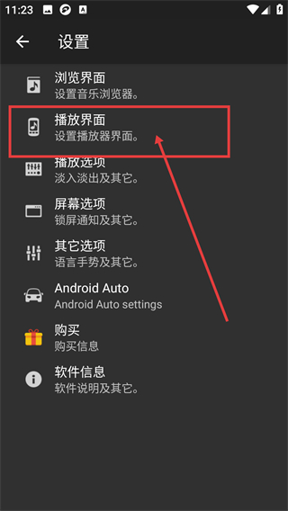 2、进入设置页后点击【播放界面】选项,就能进入播放器界面的设置页面,自定义播放相关样式哦。