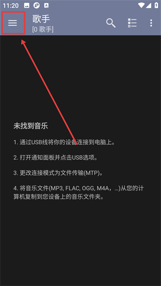 1、在音乐应用的歌手页面点击左上角的菜单按钮,就能展开侧边栏菜单,查看更多功能选项啦。