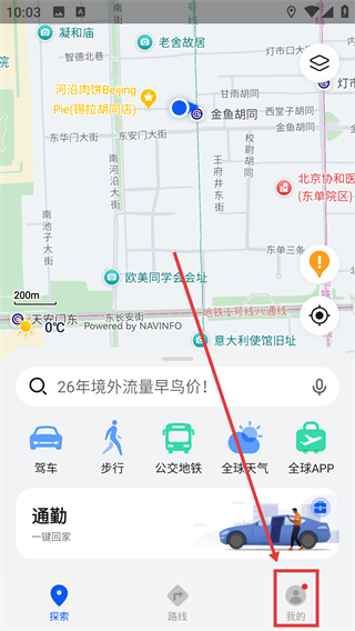 1、在地图APP首页点击底部【我的】选项,就能进入个人中心页面,管理账号相关的功能和设置啦。