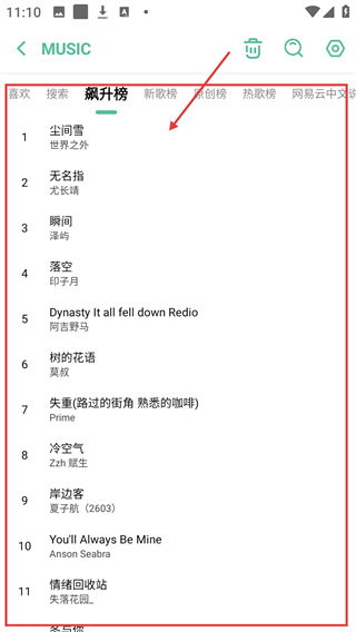 2、进入音乐页后,能看到不同榜单,选【飙升榜】就能查看当前热门歌曲列表,选歌超方便啦。
